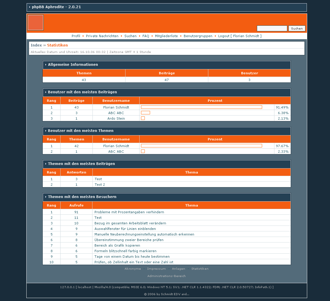 Man sieht, ich hab mein möglichstes getan, die Funktion zu integrieren, aber die Berechnung macht murks...anbei ein Bild, Montag müßte z.B. Dienstag mit 41 Beiträgen sein und dann gibt's noch Mittwoch und Freitag mit 2 Beiträgen...hmhmhm